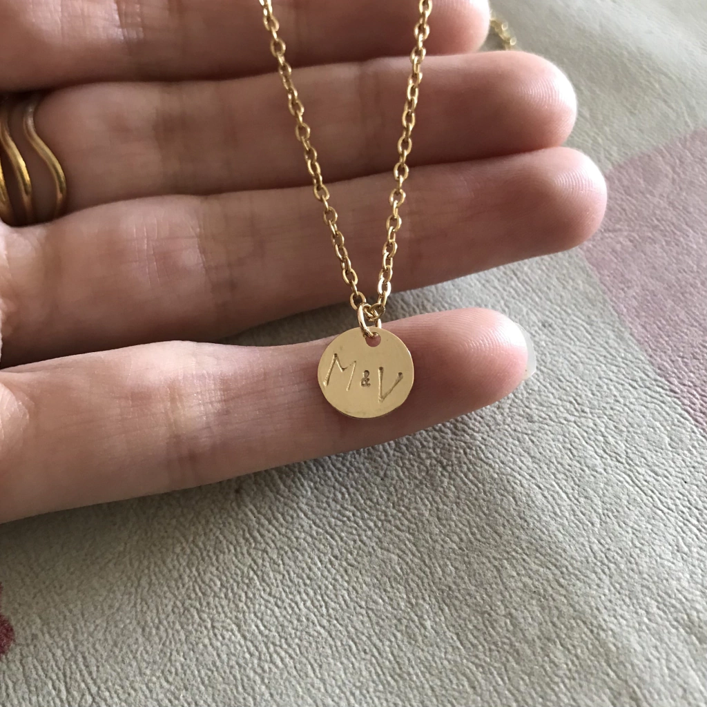 Material: la cadena es de acero bañada en oro y el dije de oro laminado. Letra grabada a mano