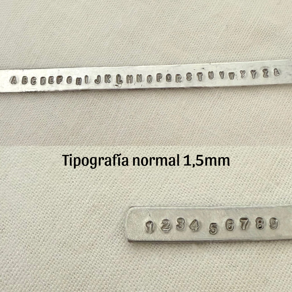 Con la tipografia de 3mm se pueden grabar hasta 2 digitos. Con la tipografia de 1,5 se pueden grabar fechas de 4 digitos (mes y año o dia y mes) y palabras de hasta 5 letras. Los dibujos cuentan como 1 digito.
