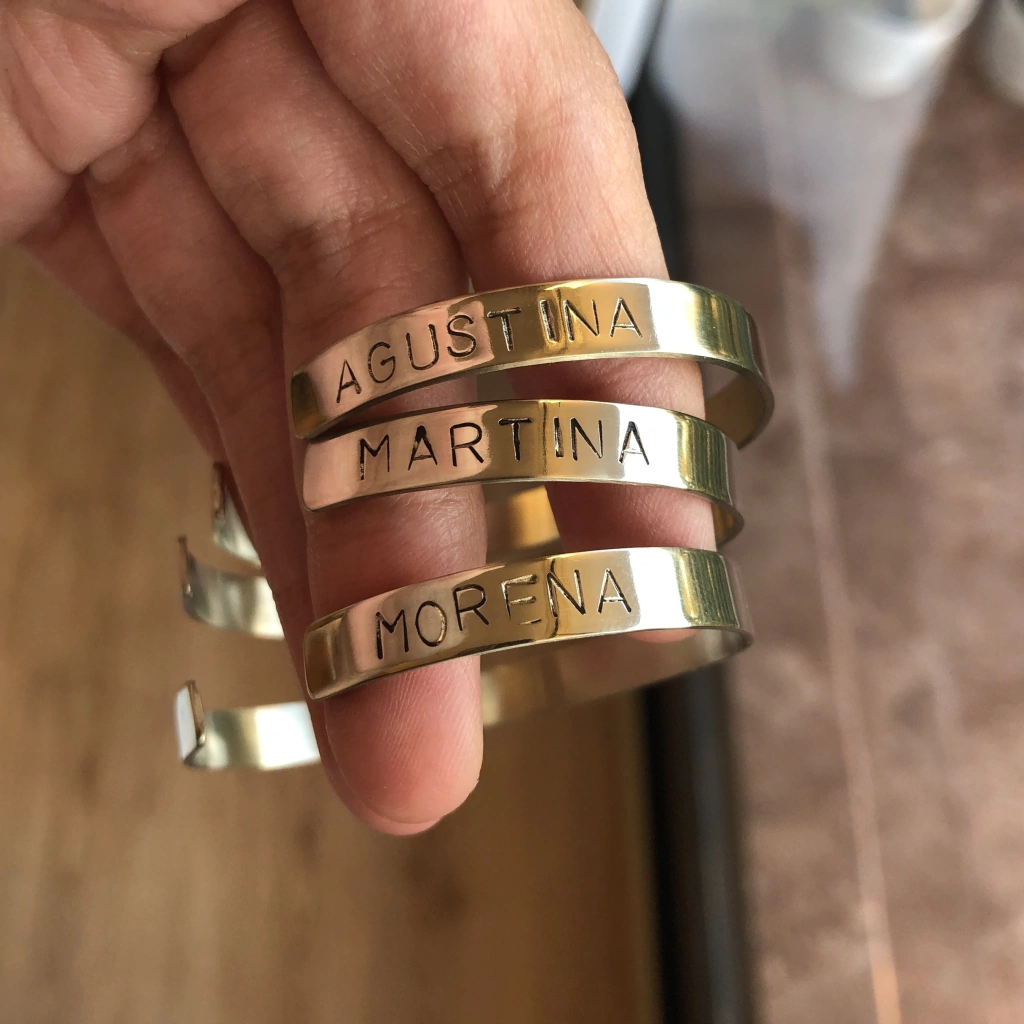 Se puede grabar por adentro y por afuera de la pulsera, tambien centrado o en los extremos. Aclarar en el espacio de grabado todas estas especificaciones. Se pueden grabar palabras, frases, nombres, fechas, etc. El grabado es totalmente personalizado.